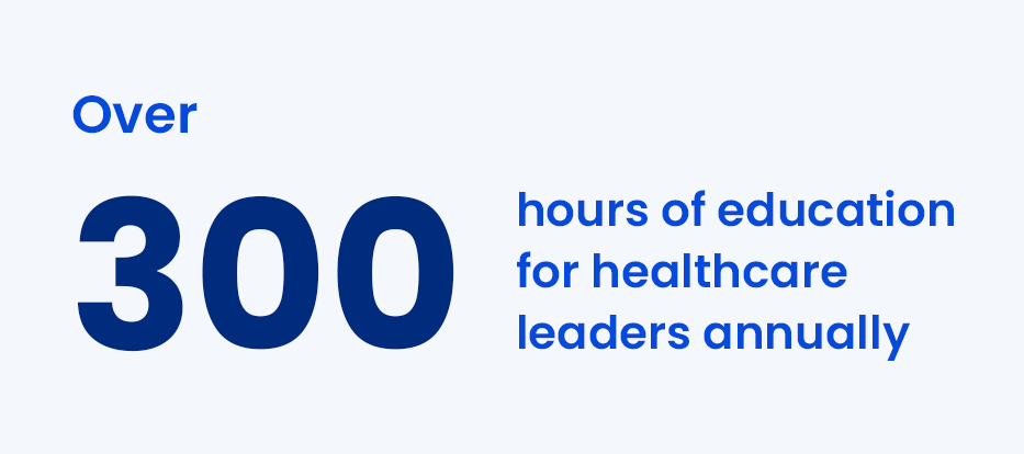 The Learning Institute delivers 70+ classroom events and webinars to 3,500+ hospital leaders and boards of directors, annually, in addition to curated networking opportunities and leadership conferences.