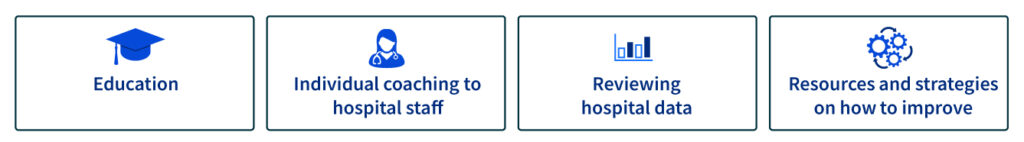 - Individual coaching to hospital staff: Our team works with staff members to identify areas where they can improve their performance and provides guidance and support to help them make the necessary changes.